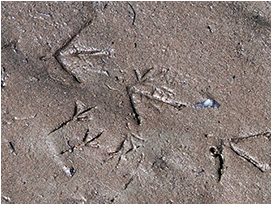 足跡や糞など,生き物がその場にいたことを示す痕跡を「フィールドサイン」と呼び,鳥のフィールドサインには羽,足跡,糞,古巣,卵の殻,食痕などがあります。バードウォッチングでは鳥そのものに触れることは叶いませんが,落ちているフィールドサインであれば,手に取って間近で見ることができます。
