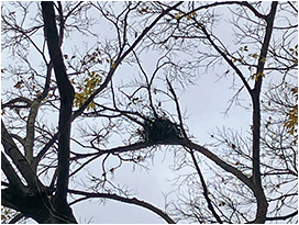 なお,古巣の観察では鳥の繁殖をじゃましないことが大原則です。春~夏は多くの鳥にとって繁殖期なので,仮に古巣のようなものを見つけても,再利用の可能性があるので近づかないほうがよいでしょう。冬であれば見つけやすいのでオススメですが,キジバトやカワウのような通年繁殖する鳥がいますし,猛禽類の中には同じ巣をくり返して使用する鳥もいるので注意が必要です。