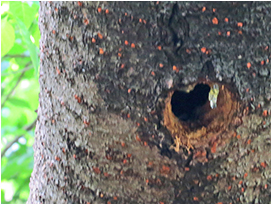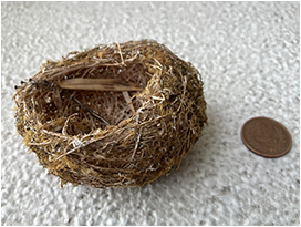 羽ほどは見る機会は多くないですが,巣も鳥らしいフィールドサインです。特に冬は木々の葉も落ちて,「あれ,こんなところに巣があった」と目につく機会も増えます。一般的に「鳥の巣」と聞いて思いつくのは,木や草を編んだり,積み重ねたりしてできたお皿のような形の巣でしょう。ほかにもチドリ類がつくる地面の簡単なくぼみだけの巣,キツツキ類の木に穴を開けてつくった巣,カワセミ類の地中に穴を掘って作った巣など,巣の形状は鳥によってさまざまです。鳥が使い終わった古巣はその場所で鳥が繁殖した証拠であり,その形や場所から種を絞り込むことは可能です。
